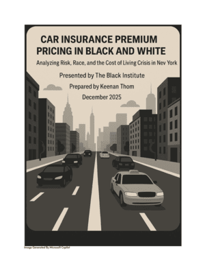 The Black Institute aims to contribute to the discussion on insurance rate increases with a research report detailing the history and context of this issue, the data associated with insurance rate fluctuation across NYS, the policy implications of said findings, and a discussion of recommendations. This paper peels back layers of literature on the subject to explore the reality of race when it pertains to insurance rates, taking industry trends and demographic data into account to assess the equity of the pricing process. Based on the body of research, the institute outlines a number of choice interventions and policy solutions to address the effects of the rise in automobile insurance rates on the Black community, with a focus on New York City and state.